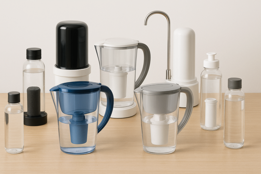 | Brita | Jarra Filtrante | ✅ Muy conocida✅ Fácil de usar✅ Cartuchos accesibles | ❌ Relleno constante❌ Capacidad limitada |