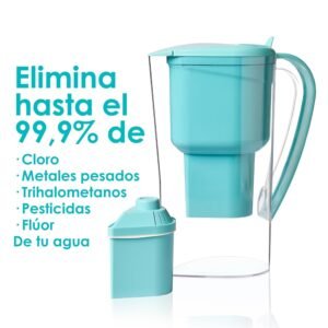 La jarra integra un sistema de filtración multietapa pensado para mejorar sabor y olor (reducción de cloro), disminuir cal y metales, y actuar como barrera frente a microplásticos/PFOA. Esta ingeniería eleva el valor del producto, pero a cambio abarata el coste por litro respecto al agua embotellada y mejora de forma consistente la calidad del agua que bebes.